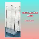 استند وارداتی سه طبقه مناسب برای استفاده در آشپزخانه و یا حمام و سرویس های بهداشتی جنس اکرولیک شفاف و جنس پایه از فلز ابکاری شده ضد خش. کار فوق العاده کاربردی برای سیب زمینی پیاز در اشپزخانه و یا لوازم بهداشتی.