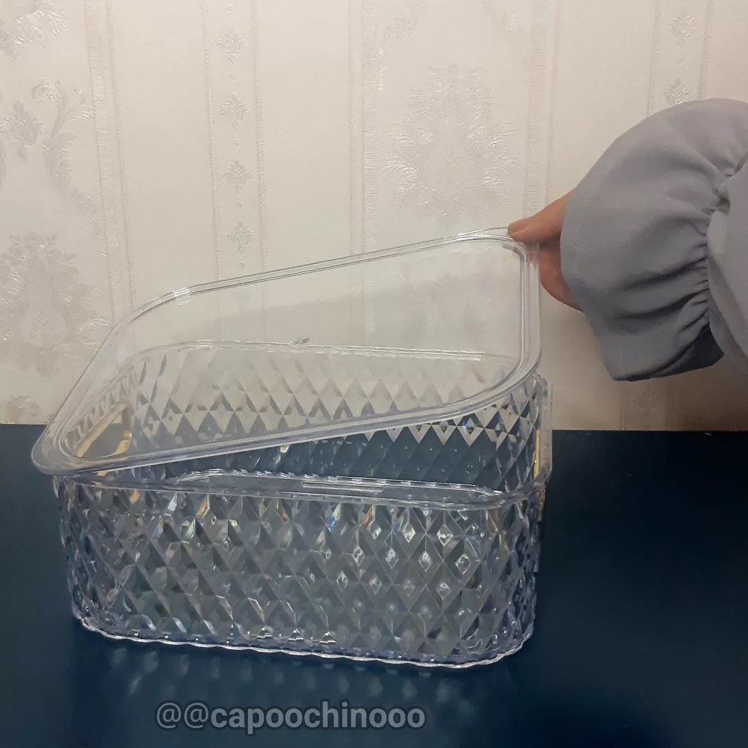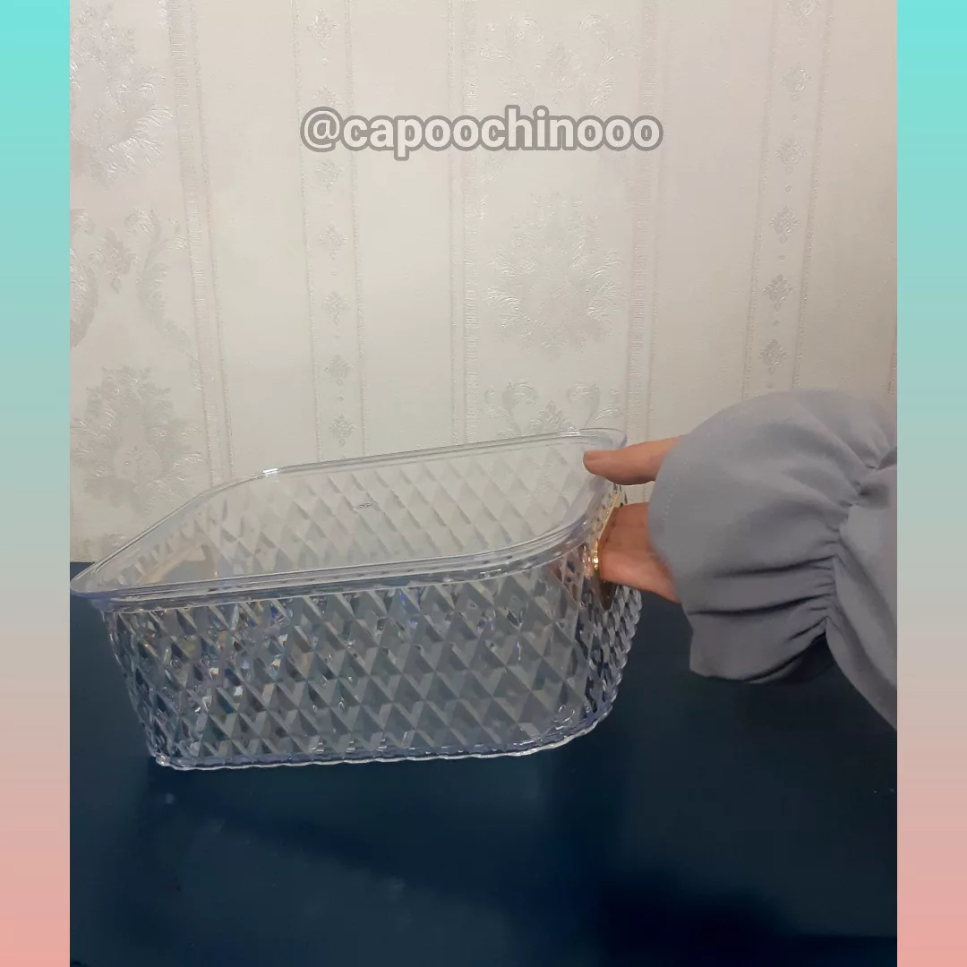 باکس مستطیل در دار با دسته طلایی از جنس کریستال، فوق کاربردی برای استفاده در خانه.