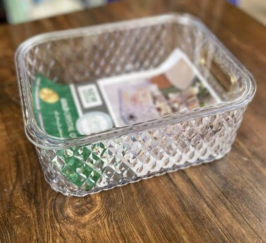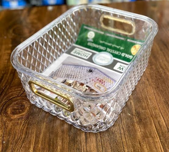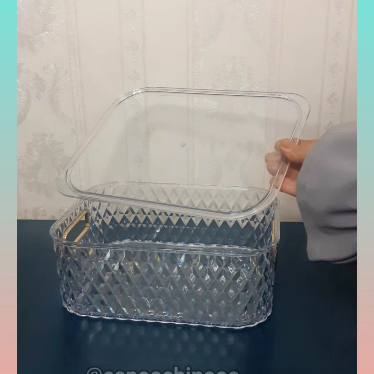 باکس مستطیل در دار با دسته طلایی از جنس کریستال، فوق کاربردی برای استفاده در خانه.