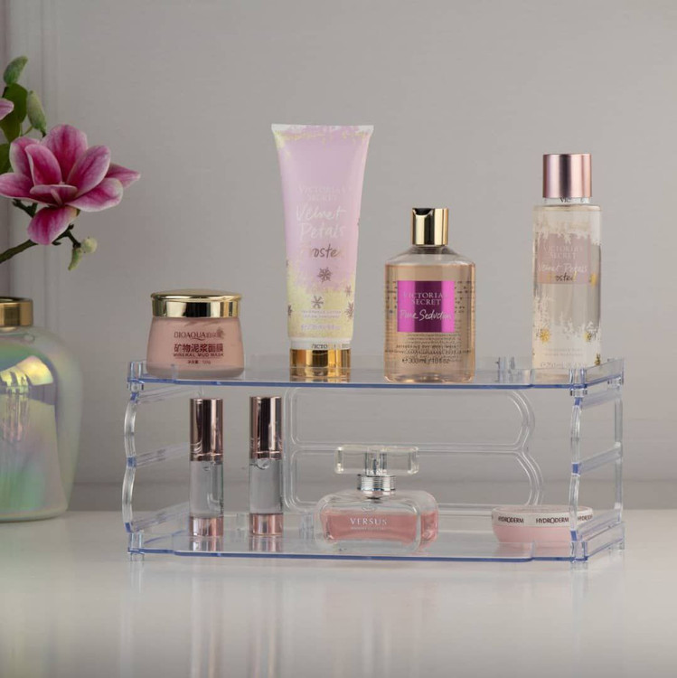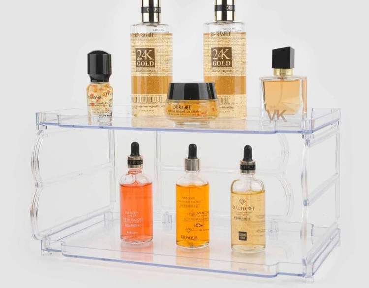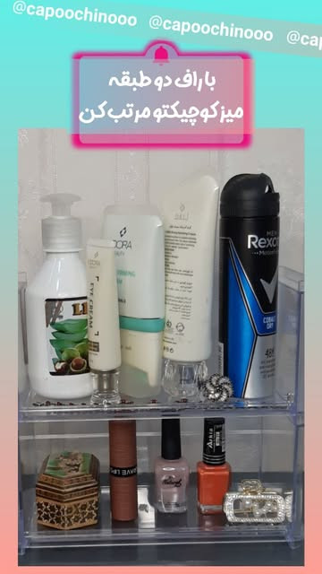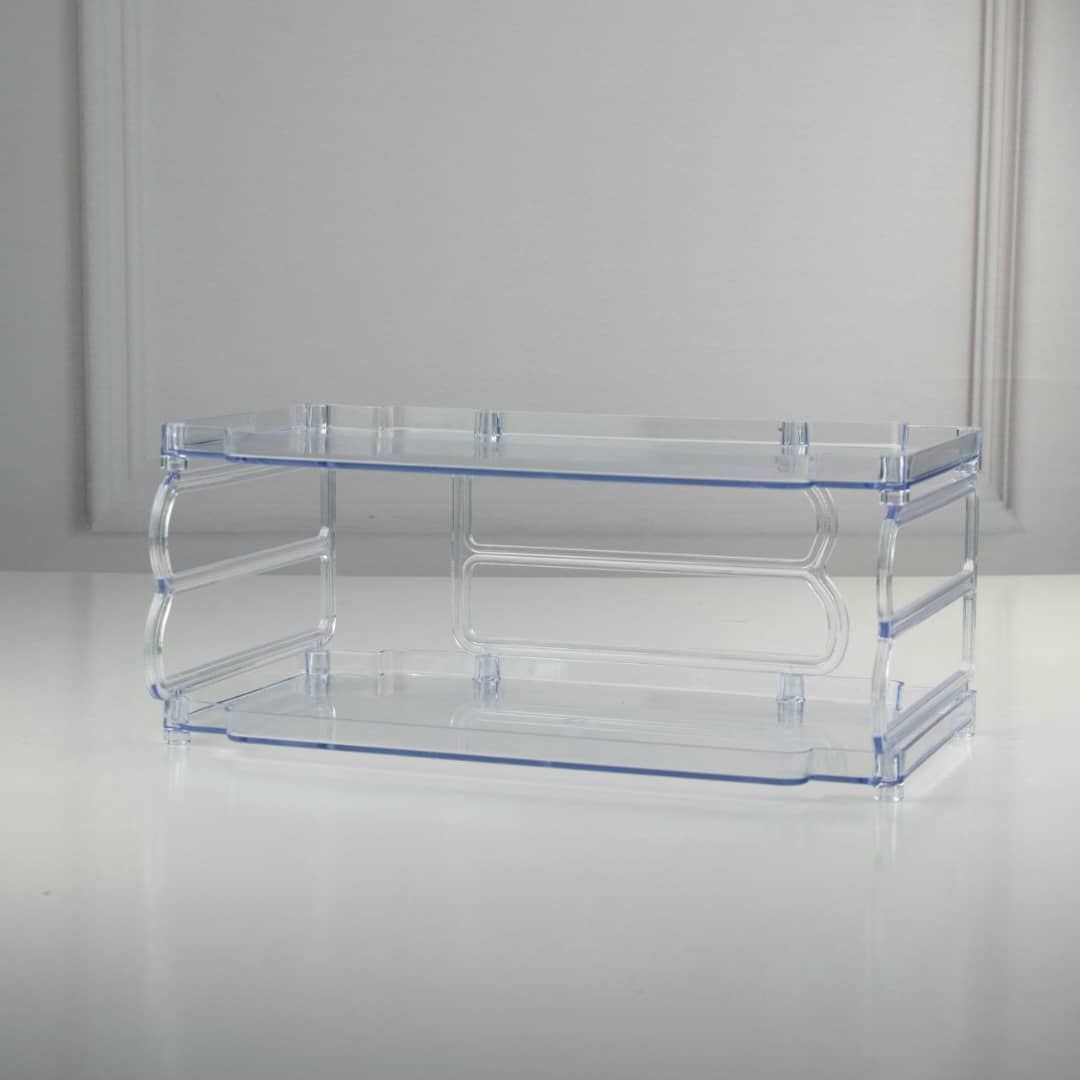 راف دو طبقه مناسب برای نظم دادن به همه چی. جنس اکرولیک مقاوم بصورت جدا از هم قابل استفاده س.